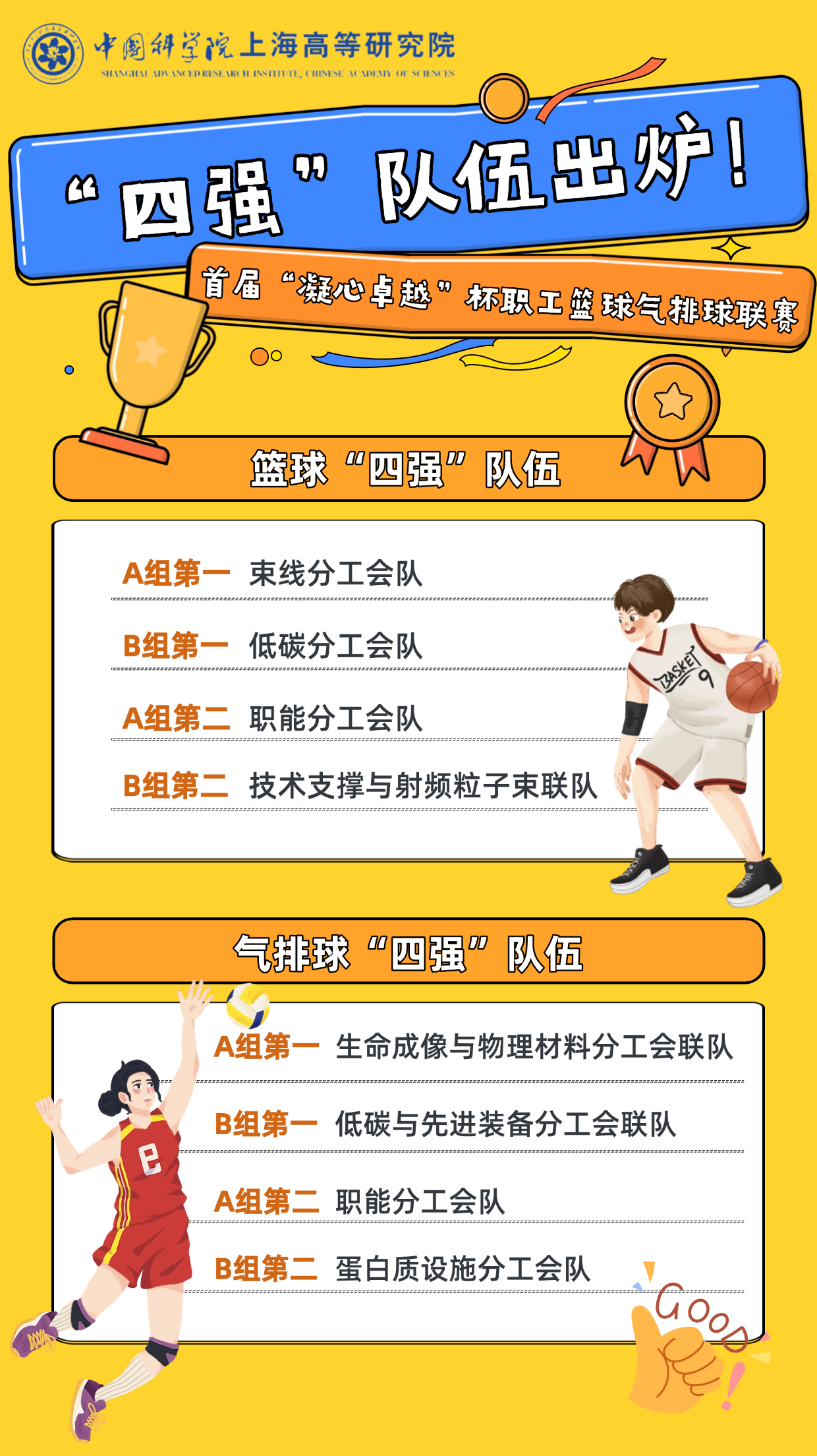 中国科研实验室上海高等研究院第三届“花YOUNG研华”文化节正在如火如荼地进行中。2025年5月19日,kdpay钱包官网首届“凝心聚力”杯职工篮球气排球联赛迎来赛程中点,精彩连连的小组赛顺利收官,“四强”队伍火热出炉,激动人心的冠亚军总决赛即将打响!
