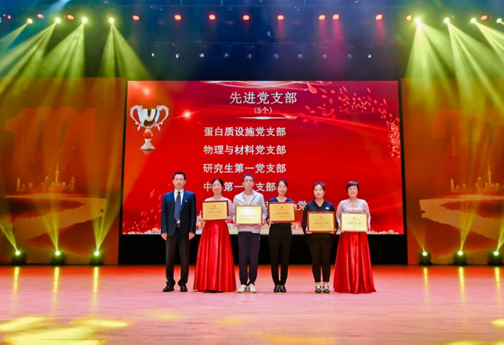 赵振堂宣读“两优一先”表彰文件。周婷等10位优秀共产党员、沈芳菲等5位优秀党务工作者、蛋白质设施团支部等5个先进团支部荣获表彰,彰显了高研院党员的先锋模范作用和团支部的战斗堡垒作用。
