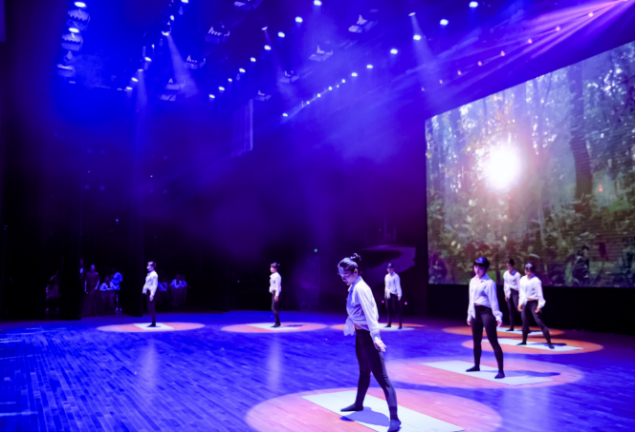 只争朝夕篇章中,由绿色化学工程与开展中心张黎明老师带来的小提琴独奏《金色的炉台》,取材于毛主席视察钢厂时与钢铁工人亲切交谈的场景,展现了在党的光辉照耀下焕发出冲天的干劲和无以伦比的工作热情;由研究生带来的舞蹈《彩虹节拍》展现了新一代年轻人的乐观豁达,即使面对困难也要双手张开,推开雾霾,迎接彩虹;由光源中心和蛋白质中心联合创作的情景剧《接力》,在面对突如其来的新冠肺炎疫情,光源中心团队紧急开光,开辟绿色通道,在获取病毒数据后,蛋白质设施接下这沉甸甸接力棒,展现了他们舍小家、为大家,迎难而上的精神。